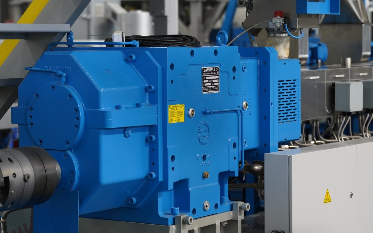 我们采用了具备18.5Nm/cm高比扭矩能力的进口齿轮箱,在高填充工况条件下仍能保持合理转速运行,这样既能保证足够的挤出压力,又把剪切温升压到了PP的容忍度范围内。